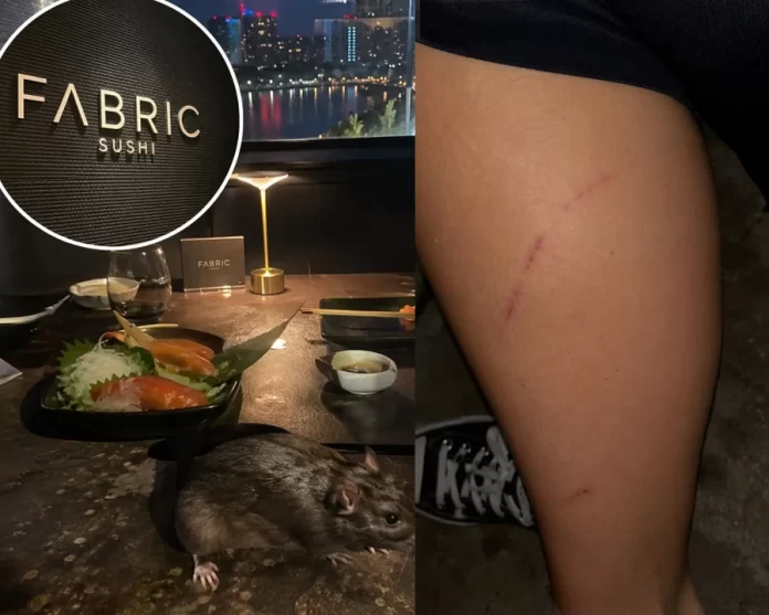 Clientes de Fabric Sushi denunciaron presencia de ratas en un local, al punto que afirman que uno de los roedores se subió en la pierna de una mujer que estaba comiendo en una de las mesas y fue lastimada.
