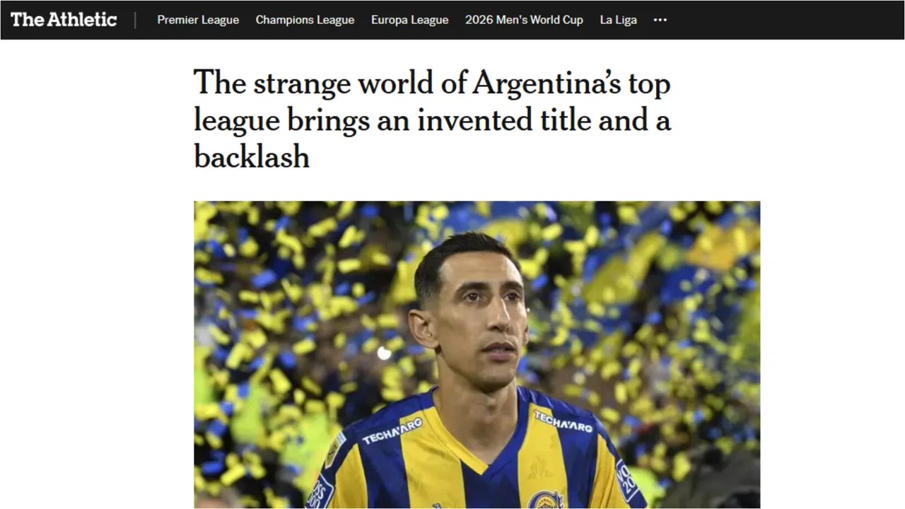 El escándalo desatado por la creación administrativa del título de «Campeón de Liga 2025» para Rosario Central alcanzó repercusión internacional. El portal The Athletic, asociado a The New York Times, dedicó un extenso artículo a la controversia, exponiendo el supuesto intento de fraude de la AFA para sancionar a los clubes disidentes.