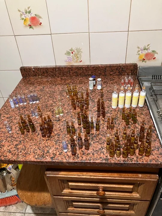 Entre las ampollas incautadas se encuentras fármacos como, por ejemplo, Propofol, Lidocaína, Difenhidramina, Dipirona, Hioscina, Fentanilo, Diclofenac, Clonazepam, Midazolam, Dexzametazona, Adrenalina, Haloperdol, Metoclopramida, Diazepam, Keterolac, Cloruro De Potasio, Ceftriaxona, Penicilina, Succinivolina.