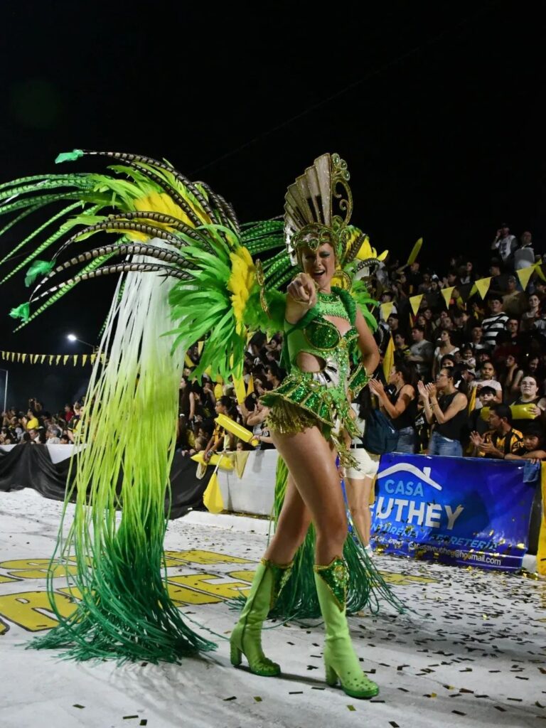 El corazón vibrante de la fiesta reside en la feroz pero amistosa competencia entre sus tres grandes comparsas: Ará Tirí, Areté y Arco Iris. Cada pluma, cada lentejuela bordada a mano en los espaldares que pueden superar los 15 kilos de peso, es un testimonio del esfuerzo de familias enteras dedicadas a la perfección del espectáculo.